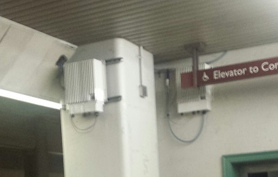 A Distributed Antenna System (DAS) is basically a way to expand a cell network's reach, adding capacity in under-covered areas. This blurry picture shows two units, both manufactured by JMA Wireless. One unit was also labeled "TEKO", a specific product line by JMA.