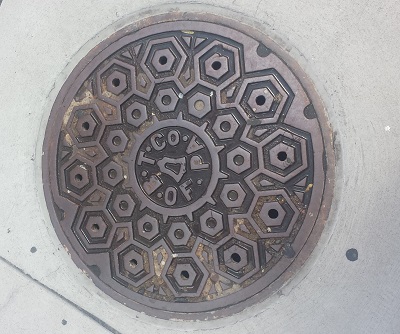 Western Union began operation in 1851, quickly creating a vast telegraph network across the United States. By 1983, Western Union's international cable system properties were sold to MCI Communications (now owned by Verizon Communications). Western Union sent its last telegram in 2006, but it is unknown whether or not older telegraph lines were pulled out of operation before this time, or if domestic telegraph infrastructure was included in the deal with MCI Communications. The hexagonal pattern on these manholes was a standard for telecommunications at the time; it is often seen today on telephone company manholes.
