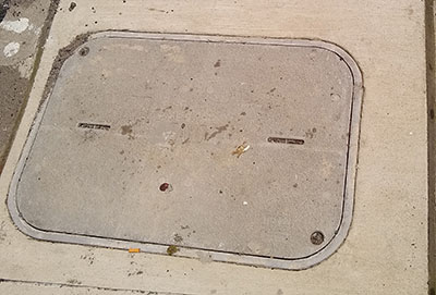 Traffic systems handholes are often seen on the sidewalk corners near crosswalks. Cabling in these connects traffic lights to large green, metal control boxes that are usually situated nearby.
