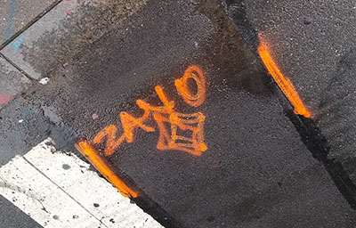Verizon markings using the letters "VZ" are becoming more common in the city to note conduit owned by Verizon.